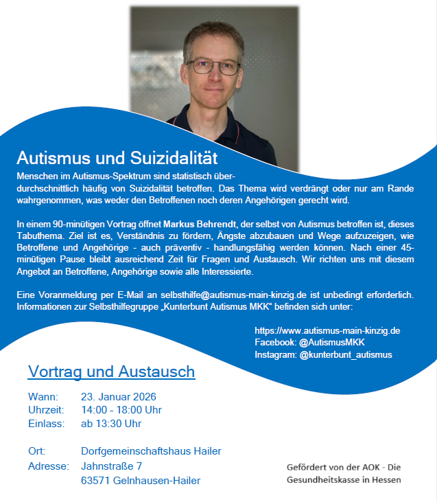 21.11.2025Therapeutische und sonstige Hilfen bei Autismus (Dr. Christine Preißmann) Verschoben auf 2026